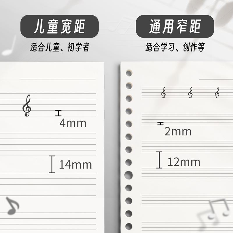 高颜值黑白五线谱本子可拆卸活页笔记子大间距自由环扣吉他钢琴初学者音乐生专用音符活页本乐谱曲谱练习本子