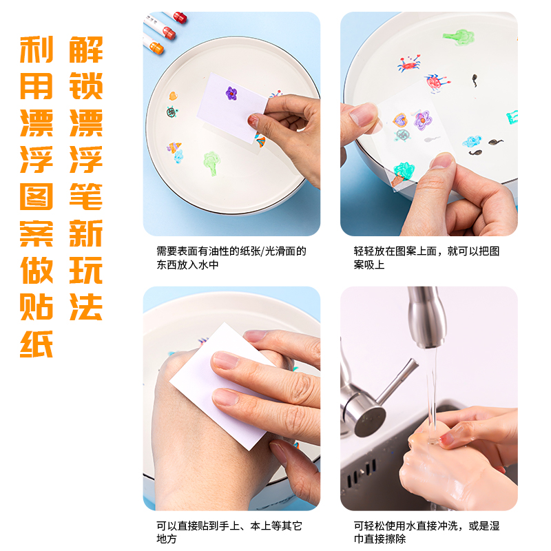 得力漂浮笔儿童水中画画送勺子神奇彩色遇水漂浮水性悬浮笔魔法彩色白板笔可擦可漂浮水彩画笔孩子水画笔