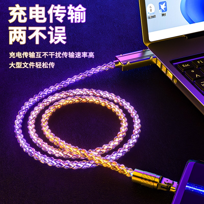 流光数据线七彩发光RGB跑马灯充电线手机超级快充6A充电器线车载闪充适用于苹果oppo华为小米车载通用氛围感
