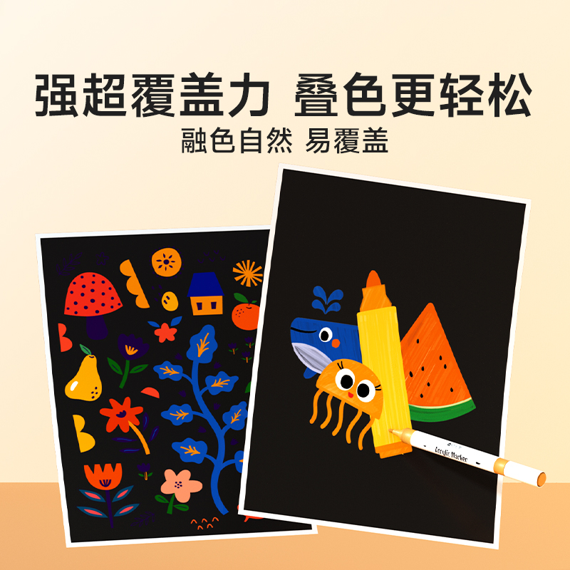 晨光丙烯马克笔学生美术专用不透色可叠色彩笔儿童幼儿无毒水彩笔