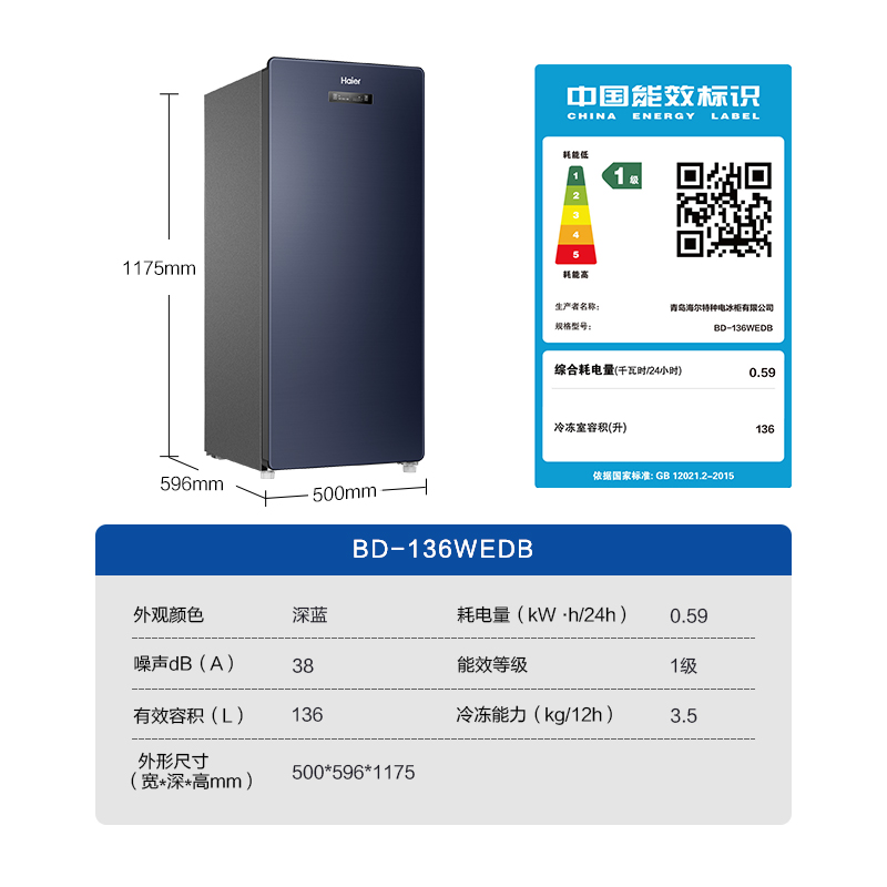 海尔haier136升立式冰柜家用小型冷柜母乳辅食节能冷藏雪柜小冰箱