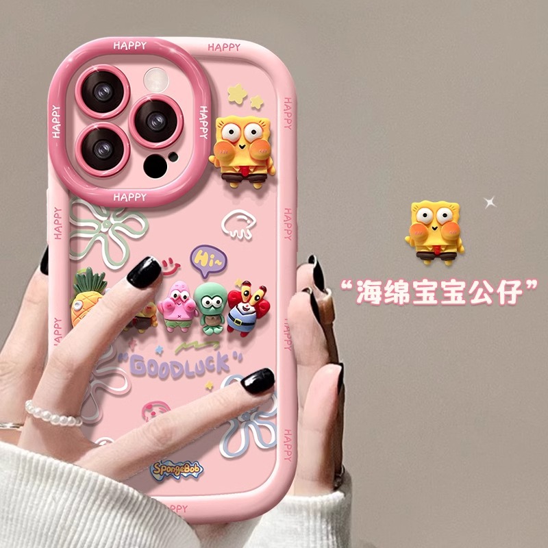海绵宝宝可爱公仔适用苹果16promax手机壳15promaxiPhone15iPhone14plus肤感15/13miniPromax学生美女最爱款