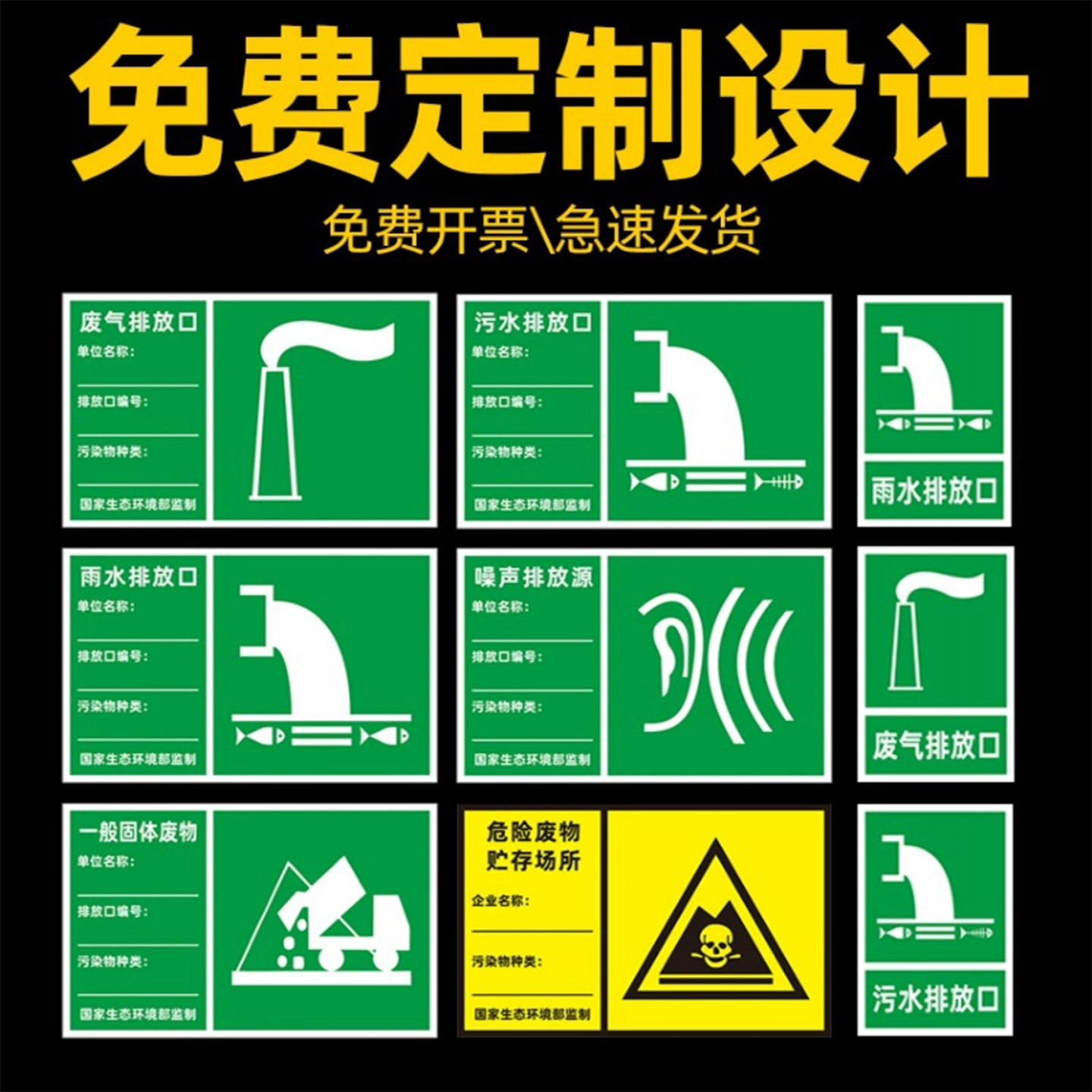 废气排放口标识牌污水雨水废水排污口环保标识牌一般固废标牌贴纸危废废物铝板废气噪音排放源指示警示牌定制