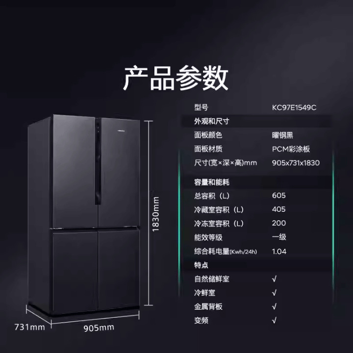 西门子605L四门对开双开门家用冰箱官方旗舰店一级能效大容量1549