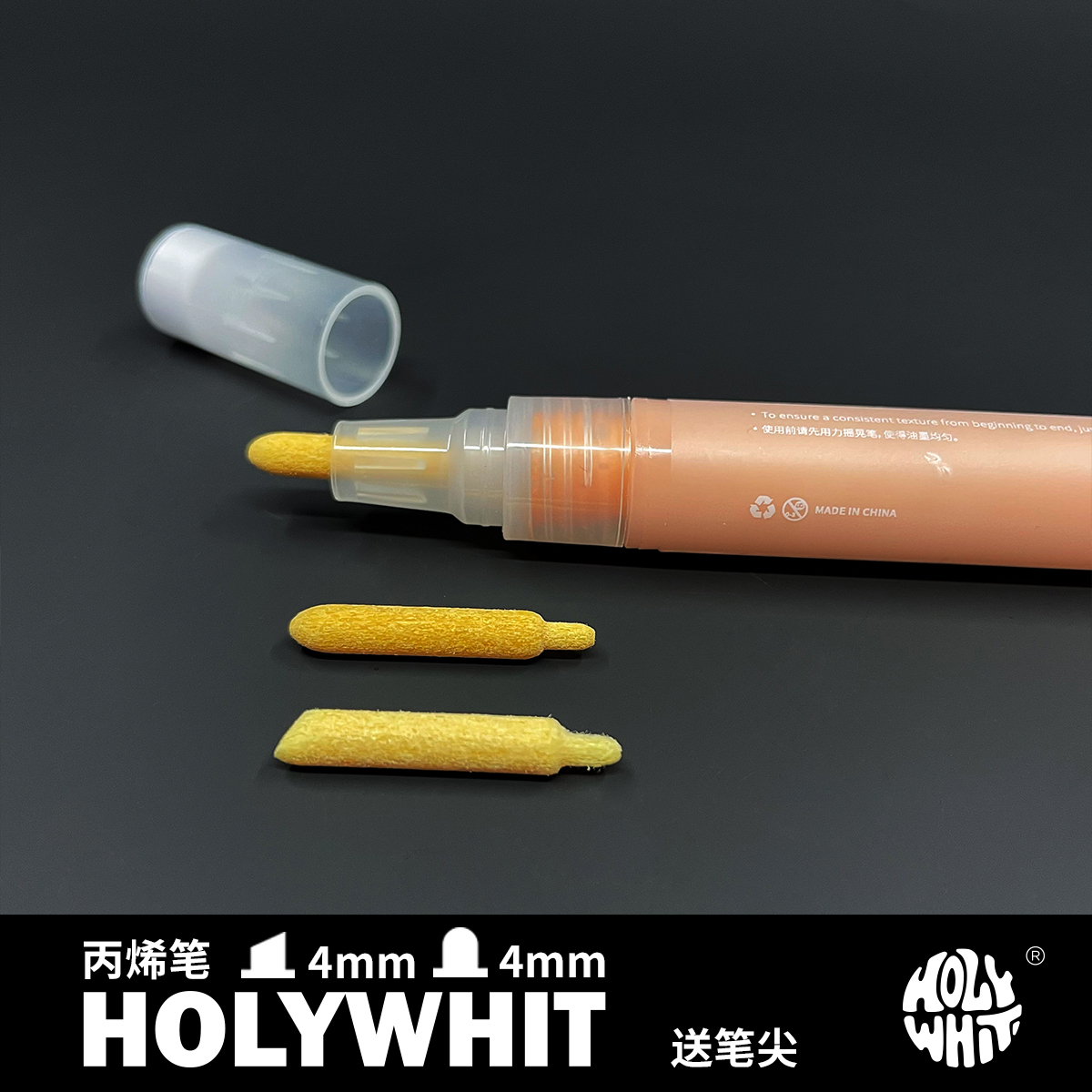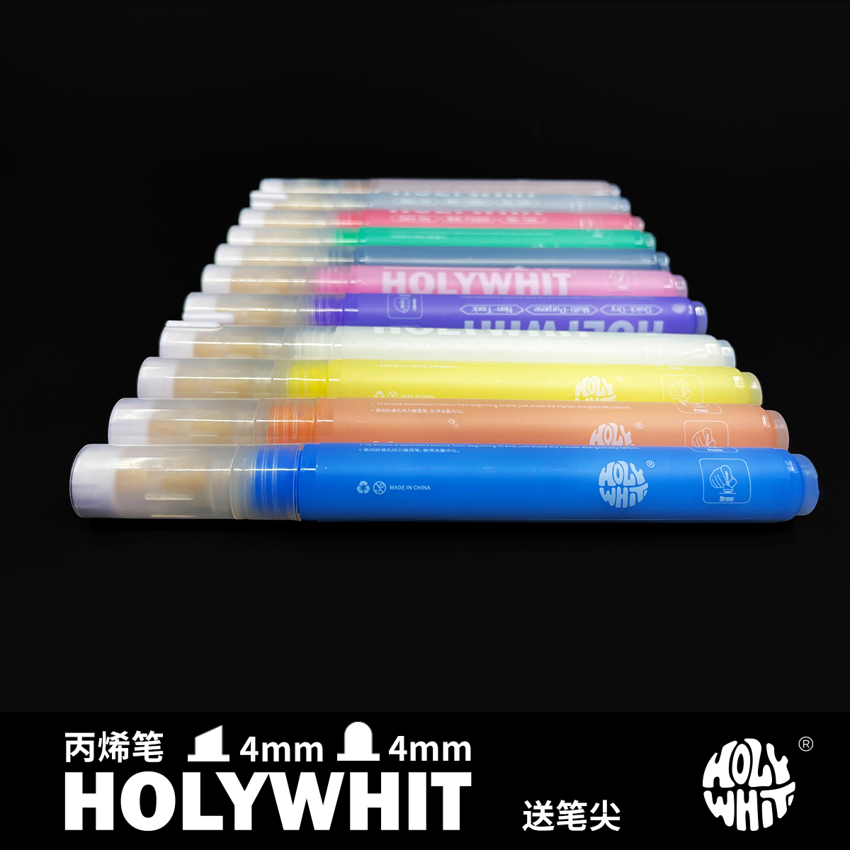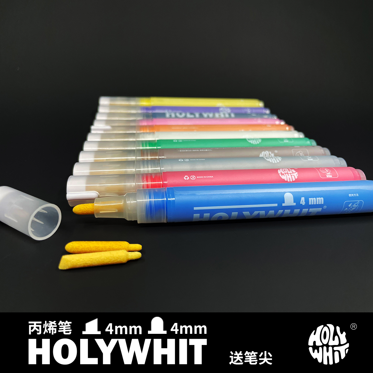 HOLYWHIT丙烯马克笔水性笔/可替换笔尖4mm/圆头/斜头/可续墨水