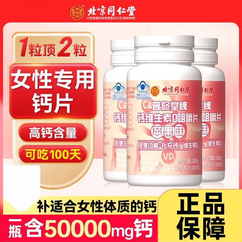 同仁堂钙片女性补钙维生素d3成人学生专用中老年骨质疏松