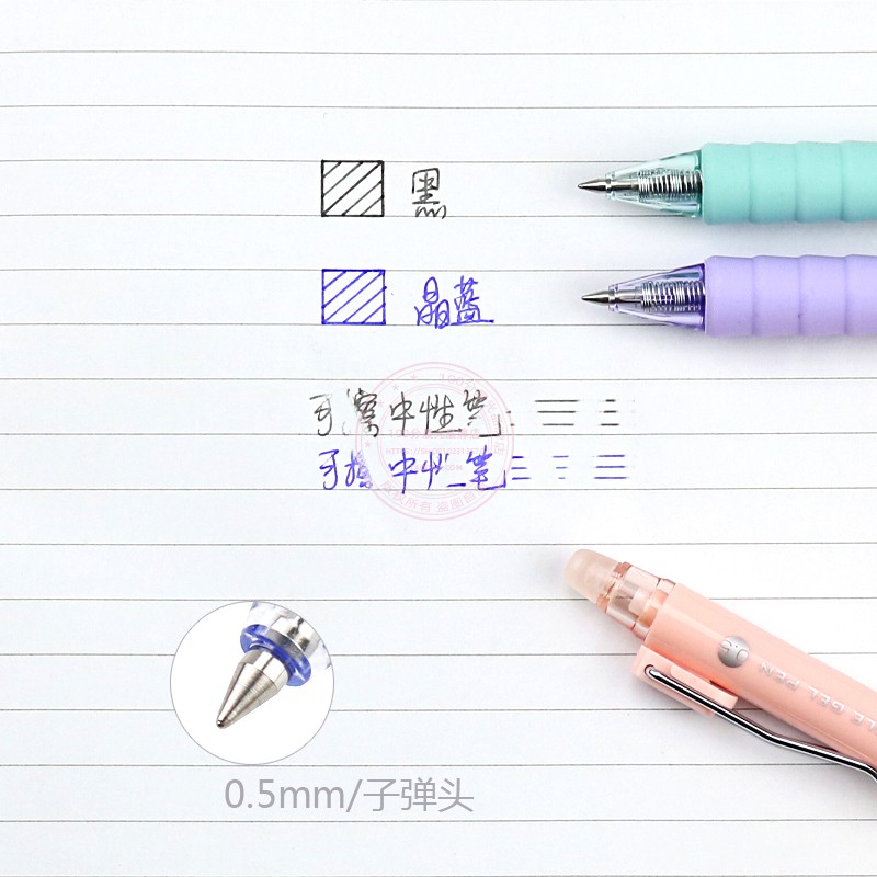 晨光热可擦按动中性笔0.5子弹头小学生可摩擦笔黑晶蓝色 AKPJ7001