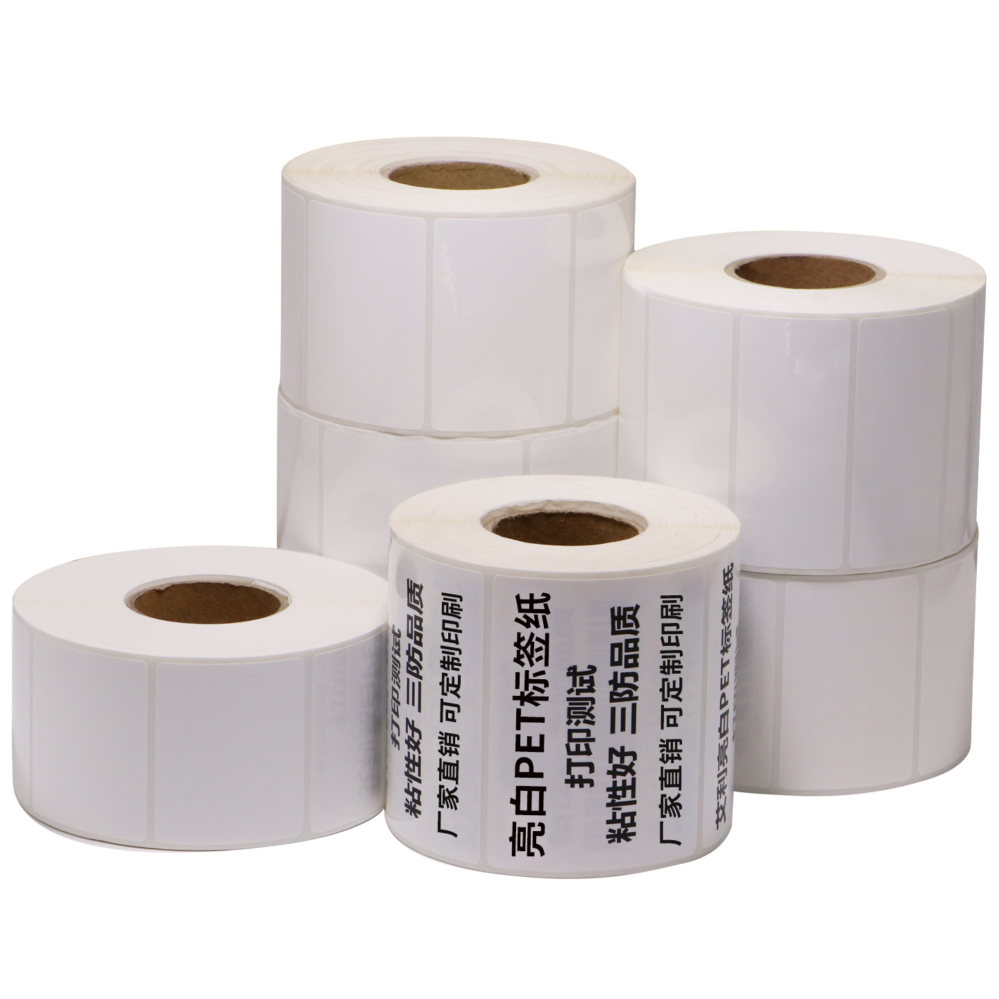 亮白PET不干胶标签贴纸20 × 25 30 35 40 45 50 55 60 75 80 x 90 *100白色防油撕不烂定制pp合成条码打印纸