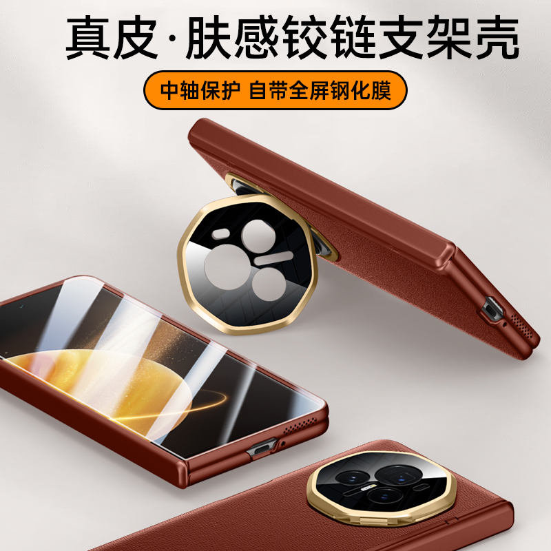 乐比亿适用荣耀magicv5手机壳新款magic v5折叠屏保护套hh真皮超薄华为v5的中轴全包防摔支架外壳honor高端男