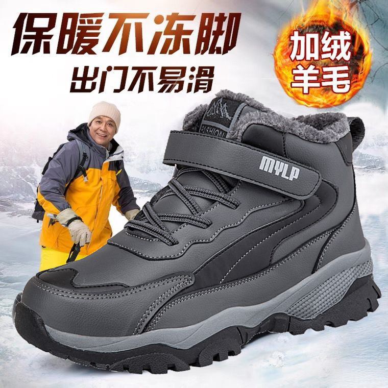 寿足力老人鞋冬季防水棉鞋防滑爸爸东北加厚羊毛加绒中老年雪地靴