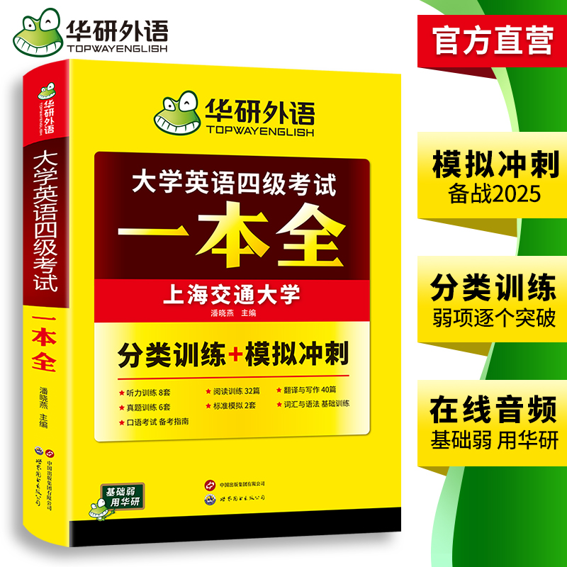 华研外语英语四级考试一本全阅读理解写作与翻译备考2025年大学英语听力词汇与写作文专项训练书试卷单词语法核心指南基础交通练习