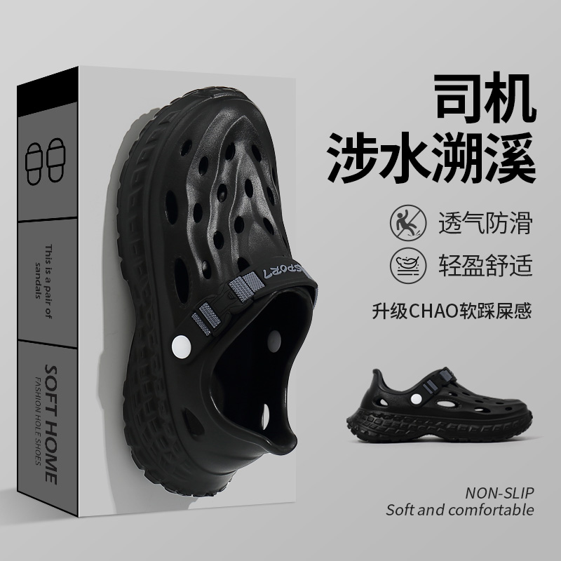 洞洞鞋男夏季外穿运动防滑开车两用男士大码软底包头沙滩凉鞋
