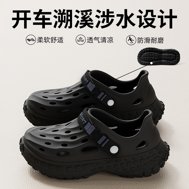 洞洞鞋男士防滑夏季2025新款踩屎感增高沙滩鞋包头户外凉鞋女外穿