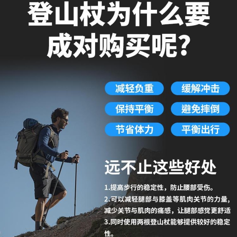 登山杖手杖超轻折叠伸缩拐杖专业户外徒步装备防滑爬山棍碳纤维