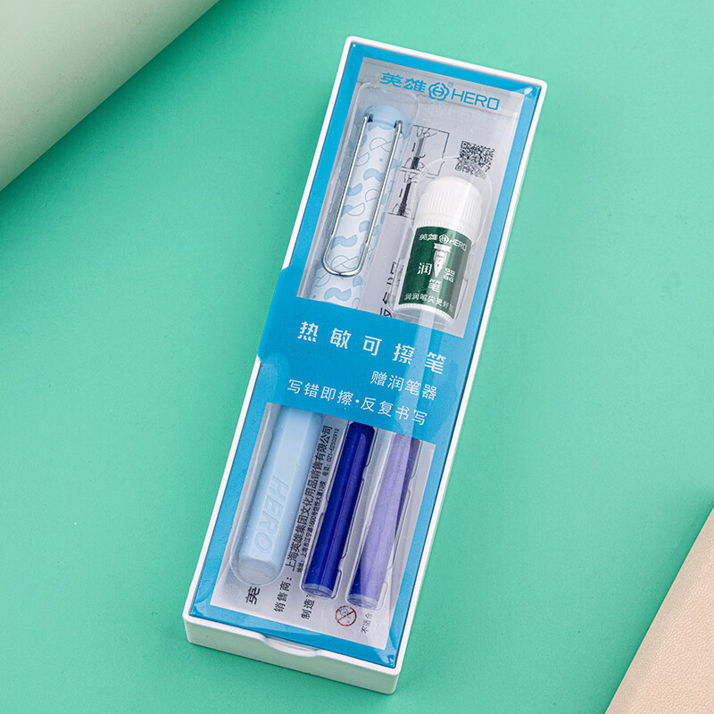 2024新品英雄牌钢笔热敏可擦钢笔小学生专用三年级练字橡皮擦小暗尖0.38可擦魔力擦晶蓝色墨蓝儿童男孩女孩