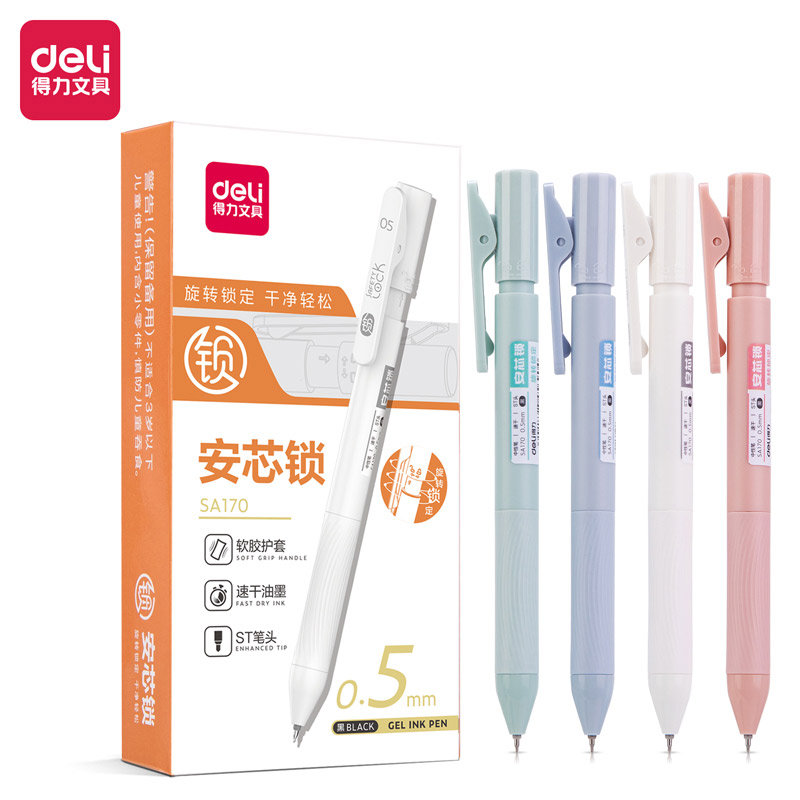 得力sa170安芯锁速干刷题笔按动中性笔ST笔头考试专用小学生笔芯