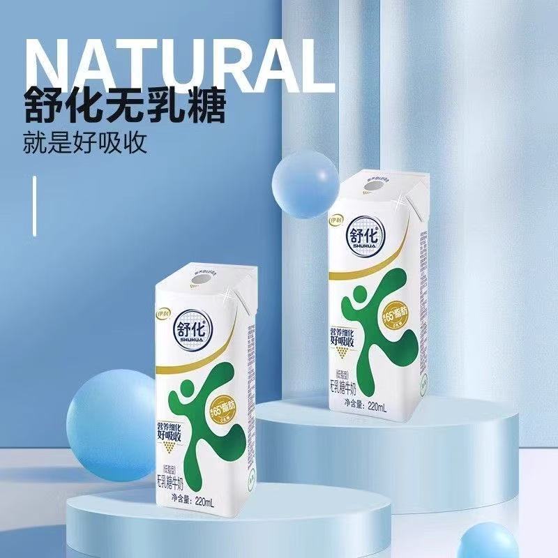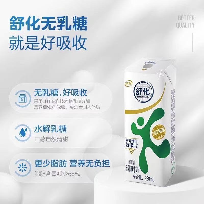 伊利舒化无乳糖牛奶低脂型220ml*24盒家庭装营养早餐奶好吸收9月