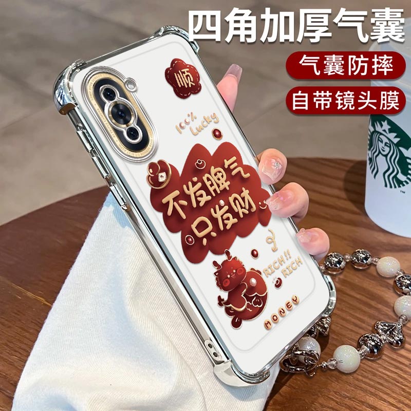 适用华为nova10手机壳发财金蛇电镀四角防摔NOVA10PRO简约硅胶气囊全包Nova10高颜值手链女款新款保护套