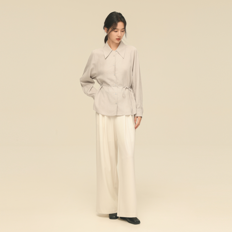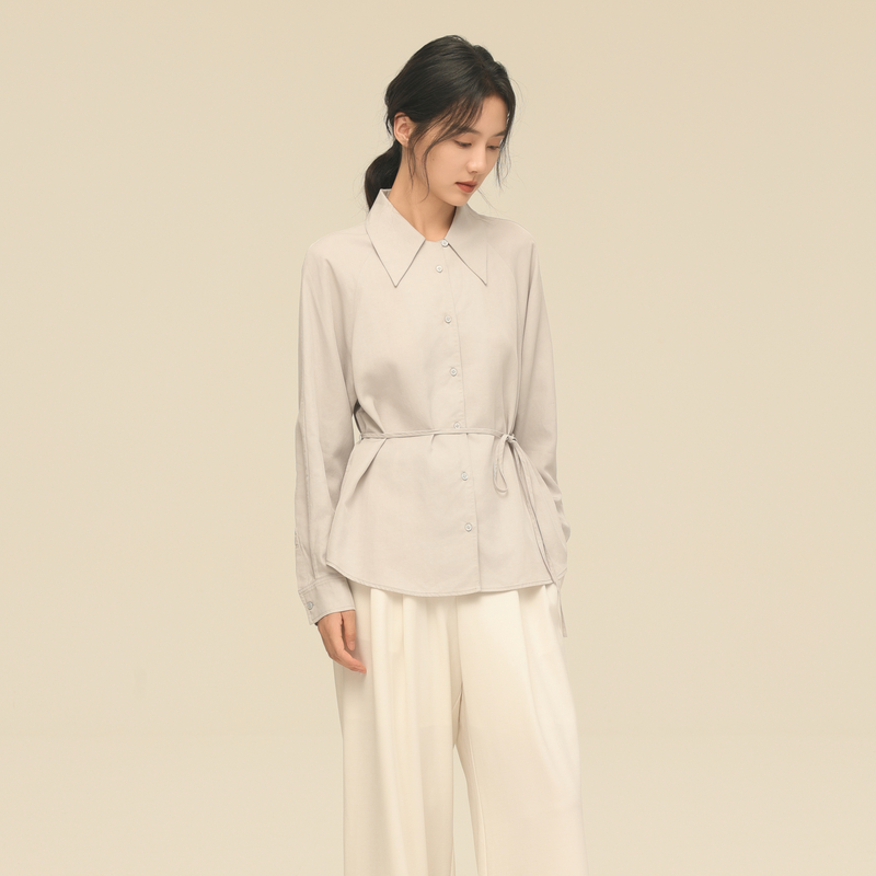 黑标BAIZHUO秋季新款翻领设计感宽松休闲系带含麻衬衫AZ43CS155