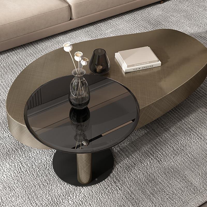现代简约不钢异合形茶化几客厅家意式轻奢锈圆茶新CJ-068几钢玻璃