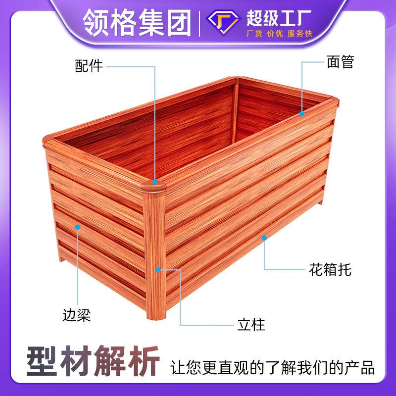 铝合金花箱户外庭院花箱市政景观组合安装阳台围栏木纹花槽种植箱