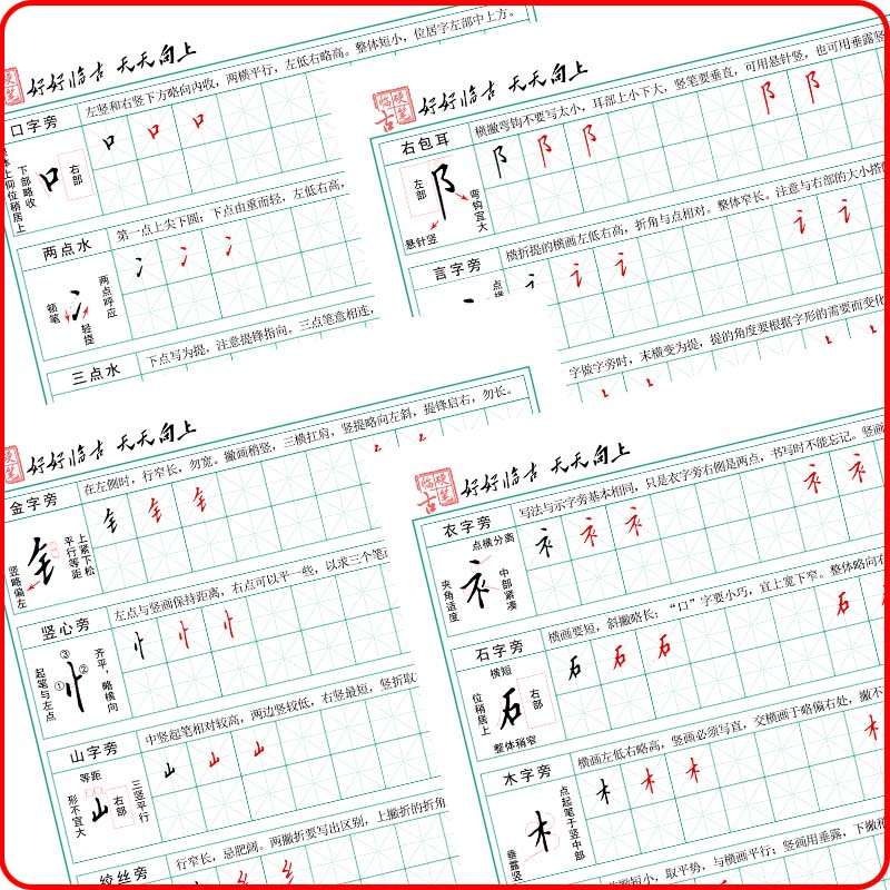 部首偏旁练字帖初学者小学生笔画间架结构要点楷书入门基础训练本