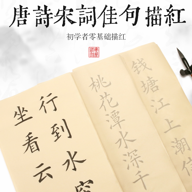 初学者中楷描红毛笔字帖练字专用成年书法入门临摹套装软笔练字帖楷书作品纸仿古纸张软头笔练习纸临慕宣纸