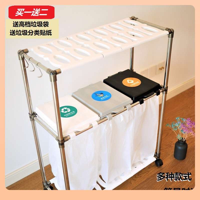 分类垃圾桶家用公司干湿分离3分4分类带轮塑料袋挂架简易多层架