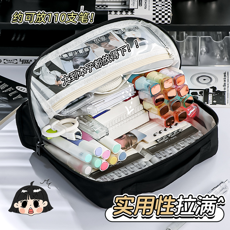 巨能装!超火大容量可站立式笔袋男孩子女生2025新款黑色文具盒女孩版男生多功能铅笔盒初中小学生高颜值痛包