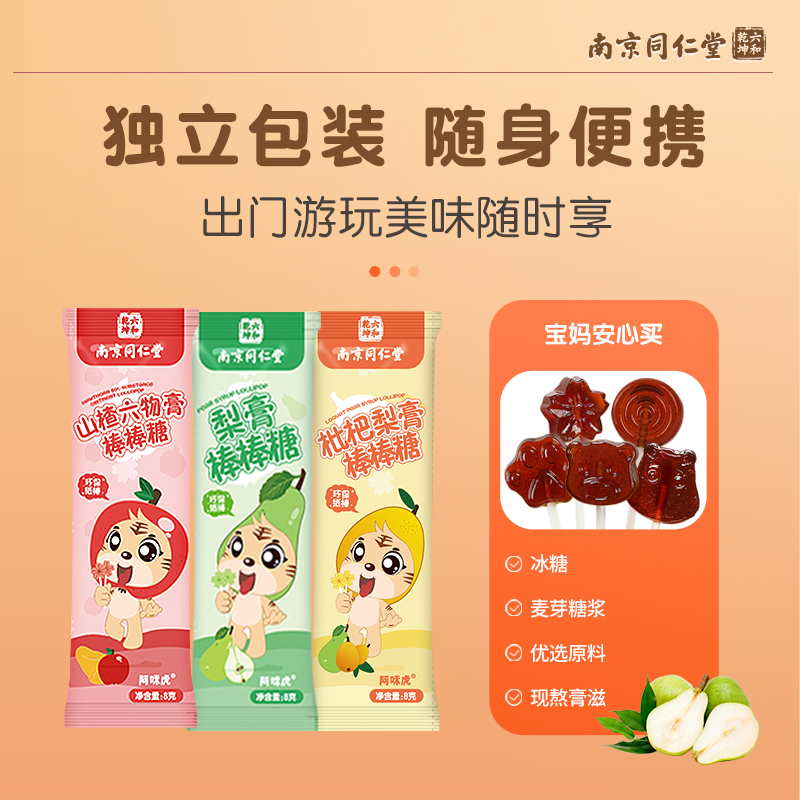 南京同仁堂秋梨膏山楂棒棒糖喜糖硬糖儿童解馋小零食糖果麦芽糖