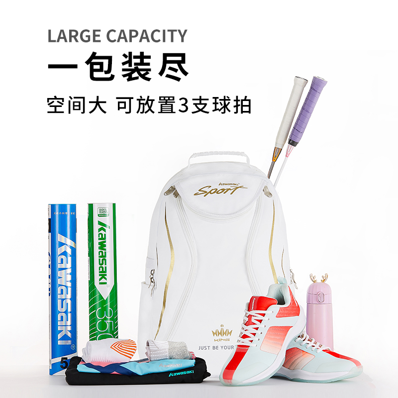 kawasaki川崎休闲羽毛球网球包大容量多功能运动双肩包有独立鞋仓