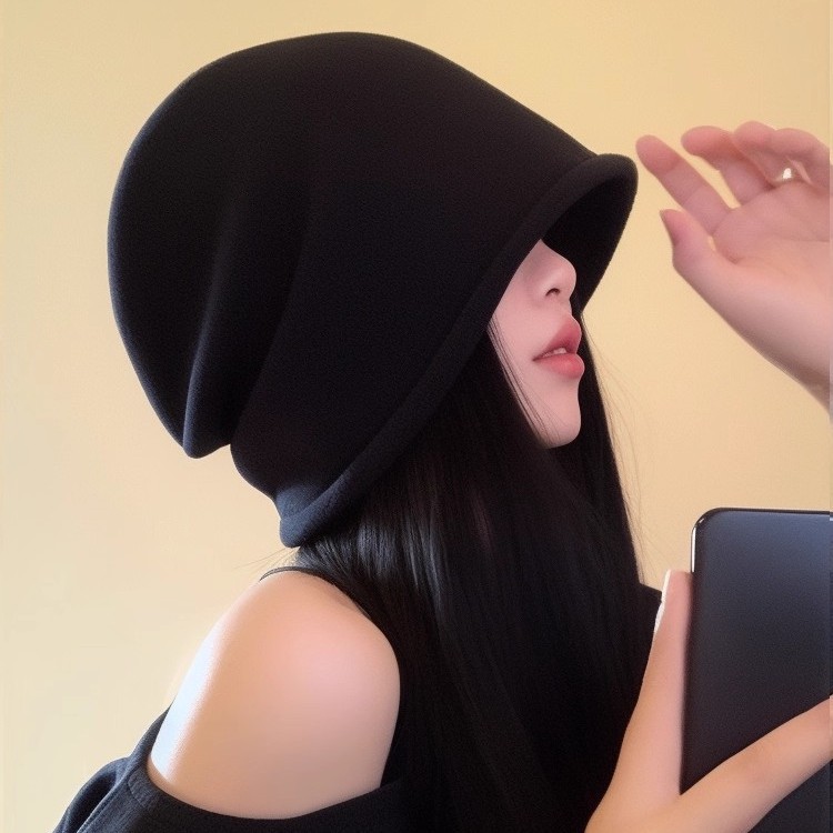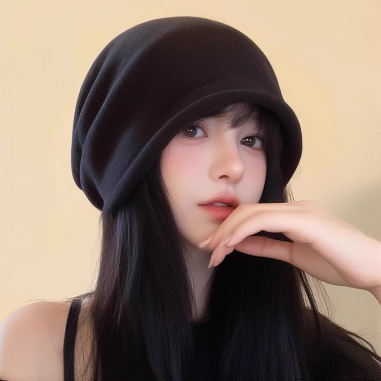 虞书欣同款帽子女秋冬季百搭大头围黑色卷边堆堆帽显脸小包头冷帽
