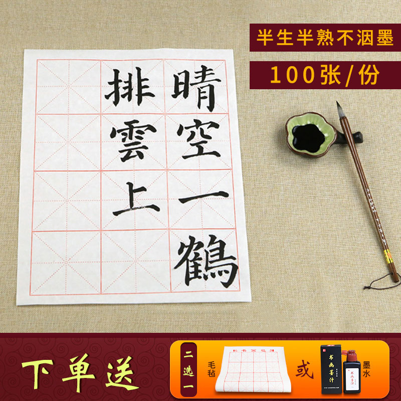 宣纸米字格半生半熟毛笔字书法练习纸初学者套装毛边纸批发100张