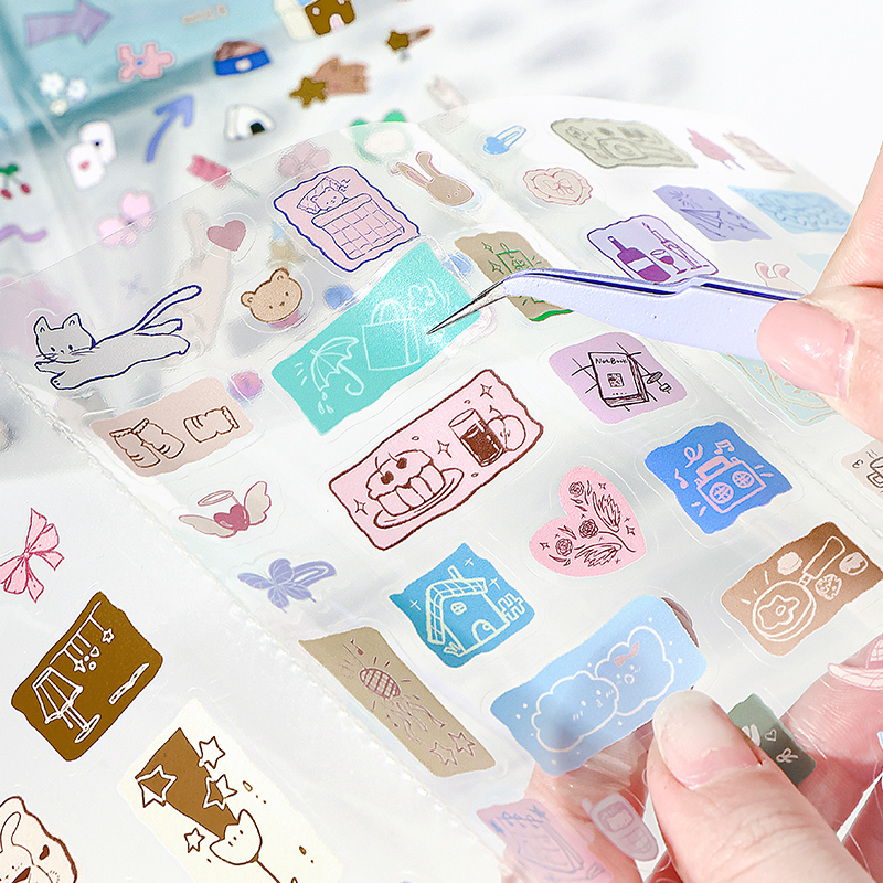 信的恋人 新款心情备忘录系列三折diy装饰贴纸 韩系高颜值可爱线条涂鸦风主题手帐拼贴装饰素材全套共4款入