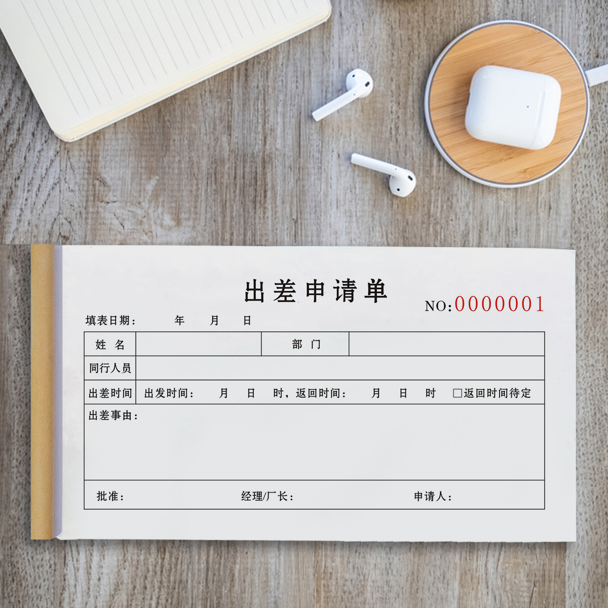 2本包邮人事行政通用人员出差申请单二联单联外出申请单公出差旅报销单公司员工外出登记表出差申请单可定制