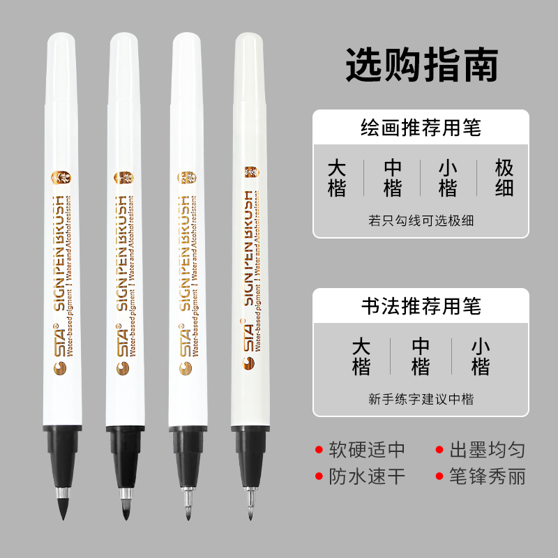 STA/斯塔3751秀丽笔套装书法笔练字笔软笔防水自带笔锋的笔签名笔签字笔大楷中楷小楷新毛笔抄经初学者字帖笔