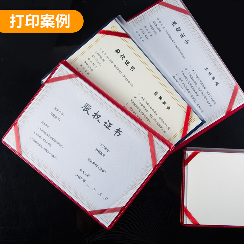 九千年高档仿皮股权证书外壳定做封皮 A4A5股份证明产权证大证书保护套股金证定制作logo外壳 加厚海绵皮革款