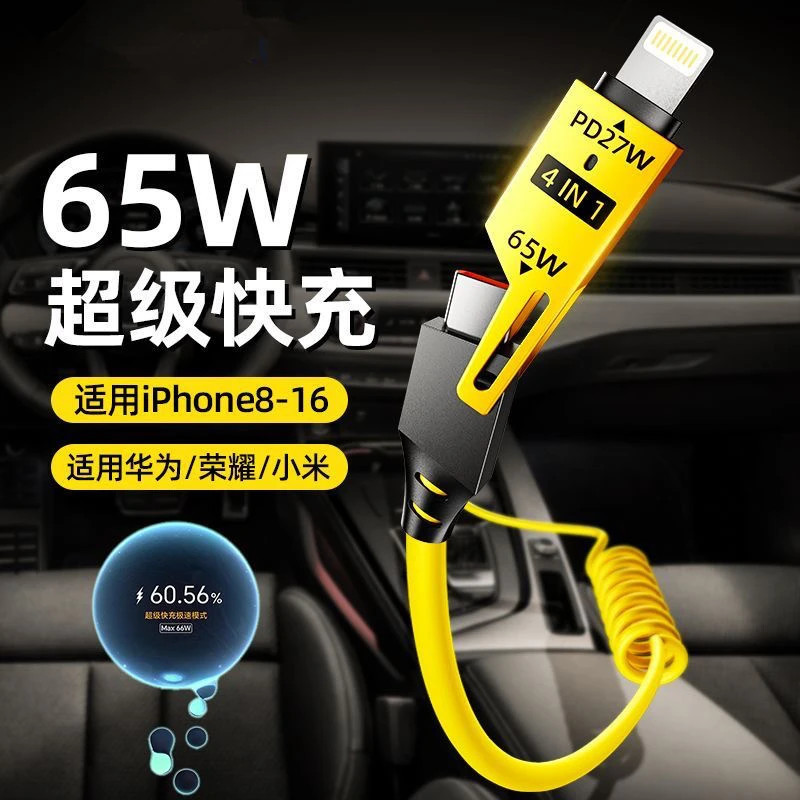 65W适用于华为苹果小米数据线四合一充电线器快充二合二多头二拖二车载多功能多通用能通用安卓手机