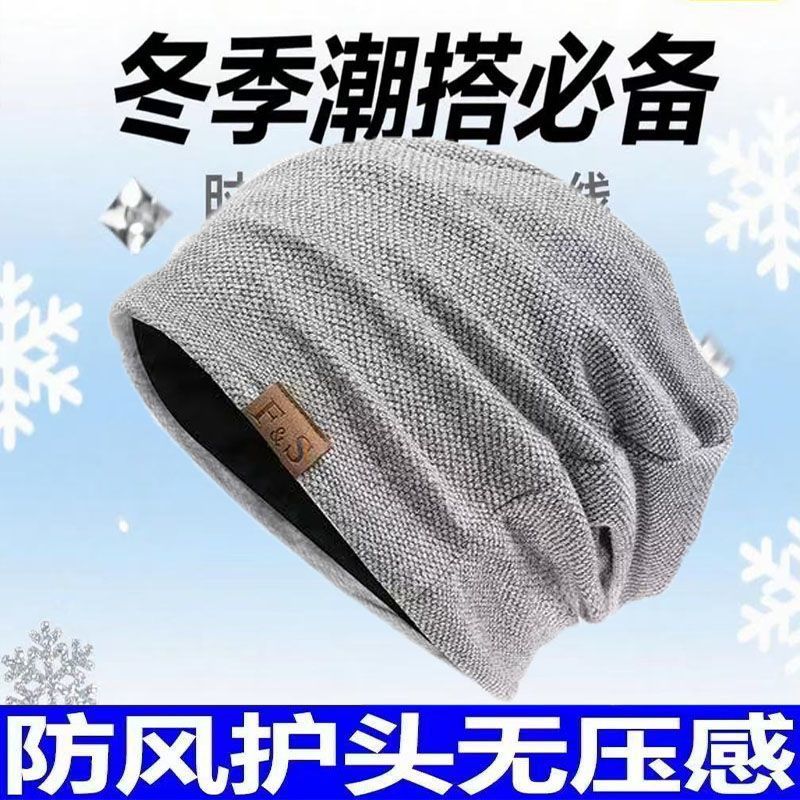帽子男士秋冬潮毛线帽男款保暖百搭冷帽宽松大头围显脸小针织帽男