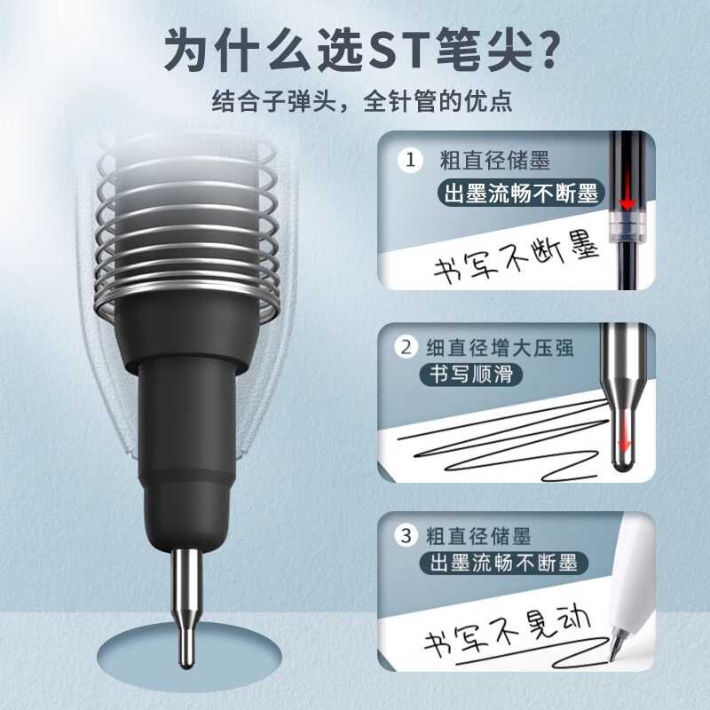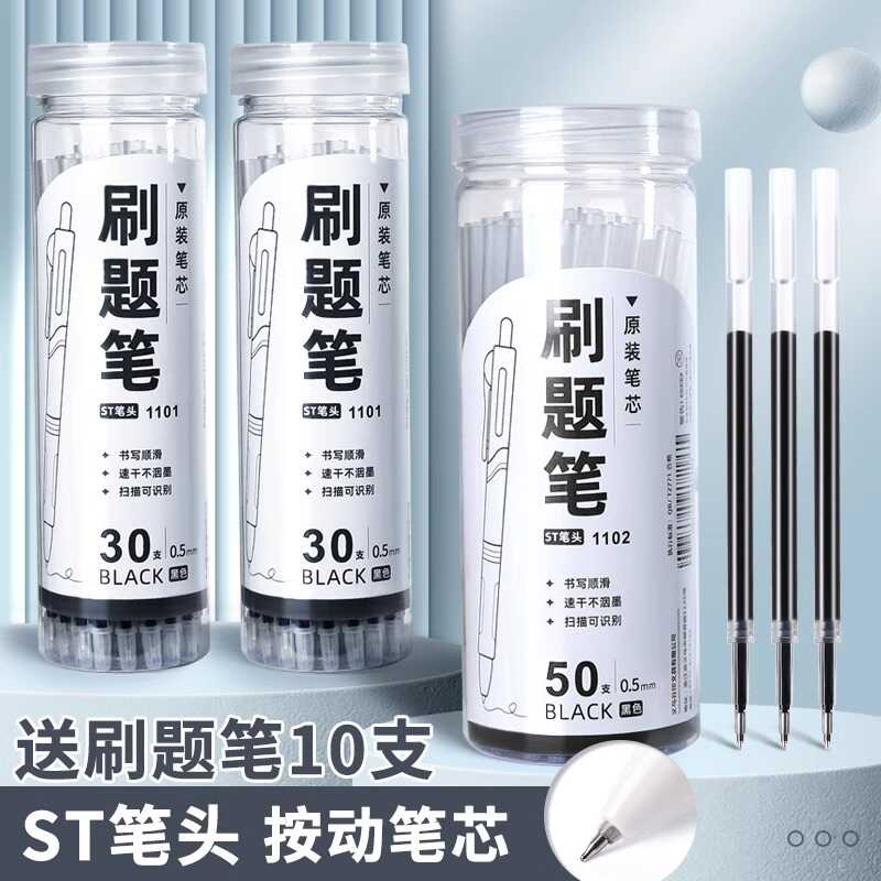 新升级ST桶装笔芯按动中性笔芯速干黑色0.5mm葫芦头刷题笔超顺滑