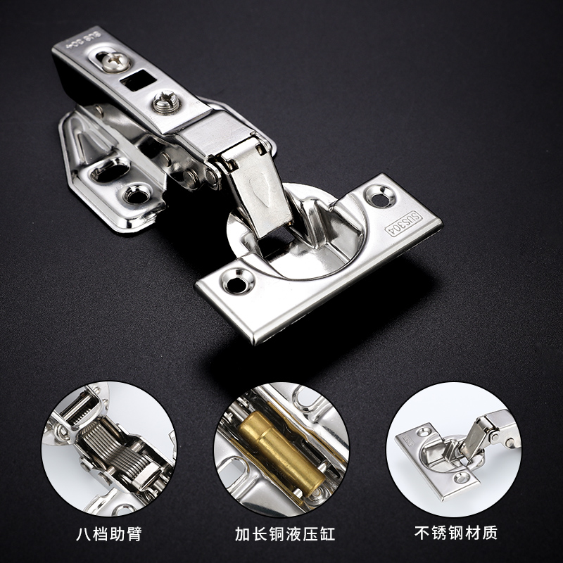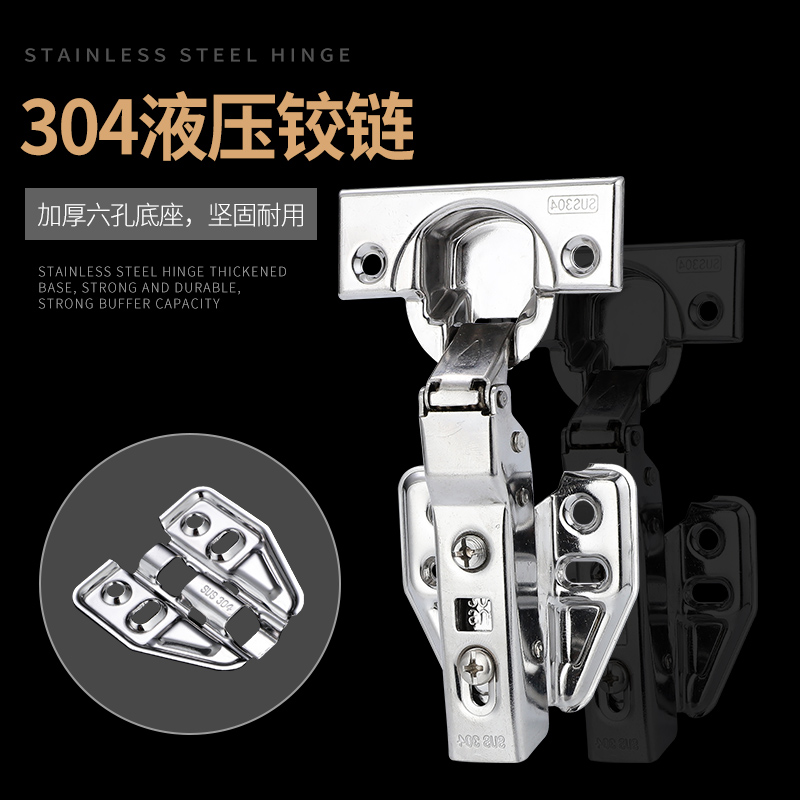 304不锈钢 阻尼缓冲橱柜门液压合页铰链衣柜弹簧五金合页大全折叠