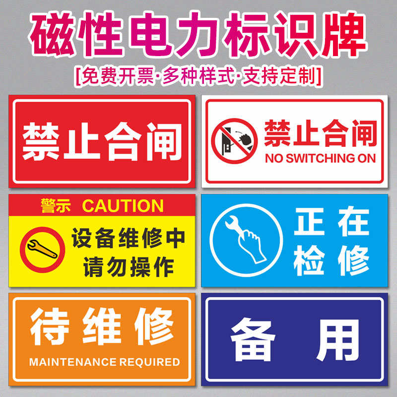 禁止合闸挂牌有人工作警示牌高压危险安全标示磁性标识牌正在维修提示贴电力抢修牌停电设备检修状态悬挂PVC