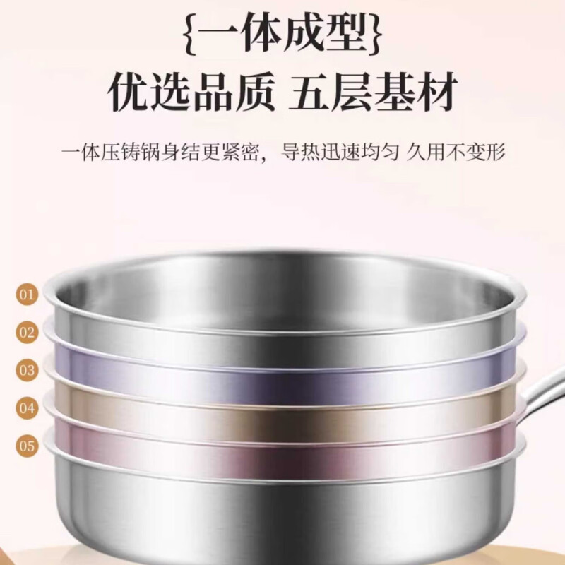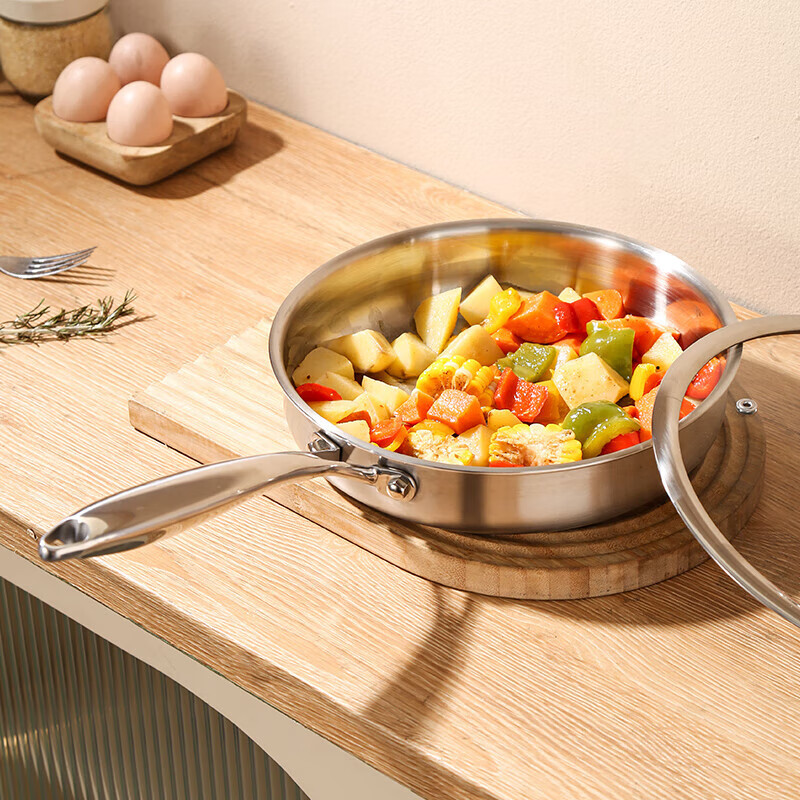 康巴赫不锈钢无涂层平底锅家用锅煎饼牛排锅平底锅煎炒锅专用炒菜