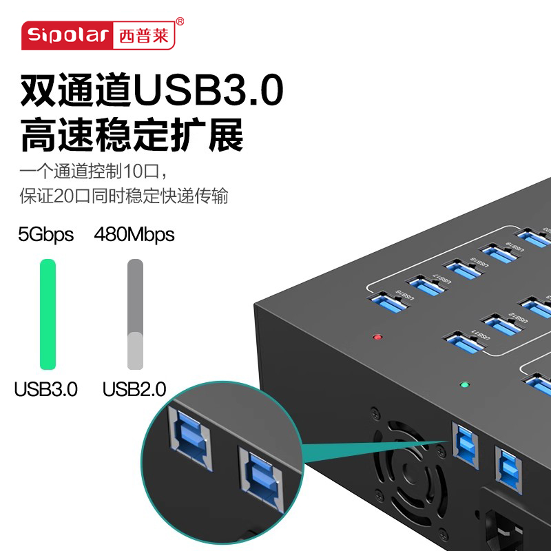 西普莱A-213P工业级20口USB3.0集线器手机平板刷机充电内置电源一体机HUB分线器 每口1A/2A可选择