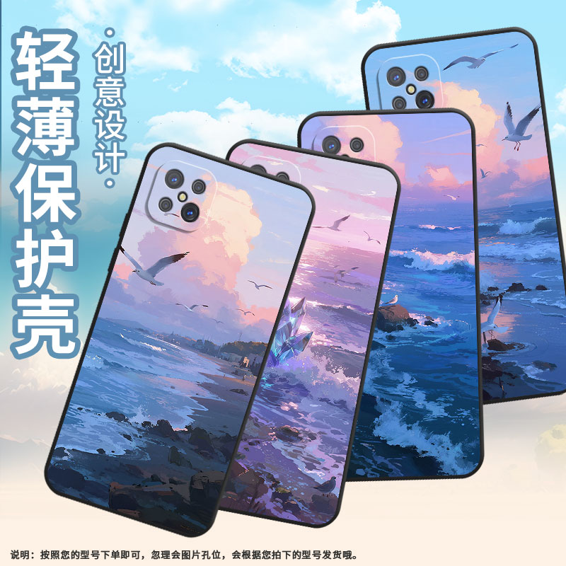 适用OPPOA91手机壳A93s不掉色PDKM00海岸线风景软壳0pp0A93防摔PFGM00商务A94纯黑色硅胶A95高级A96保护套