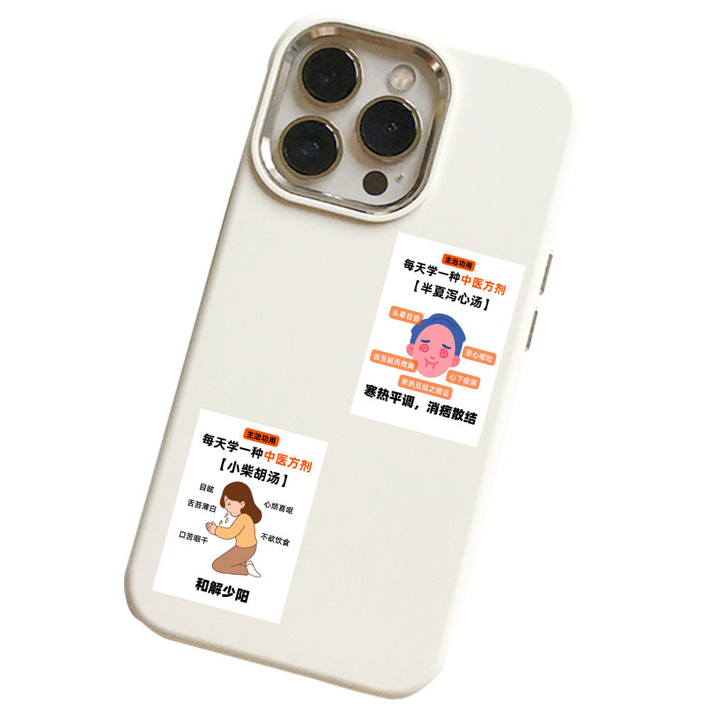 108张趣味图文中医方剂插画贴纸创意学习贴画diy笔记本手机壳防水
