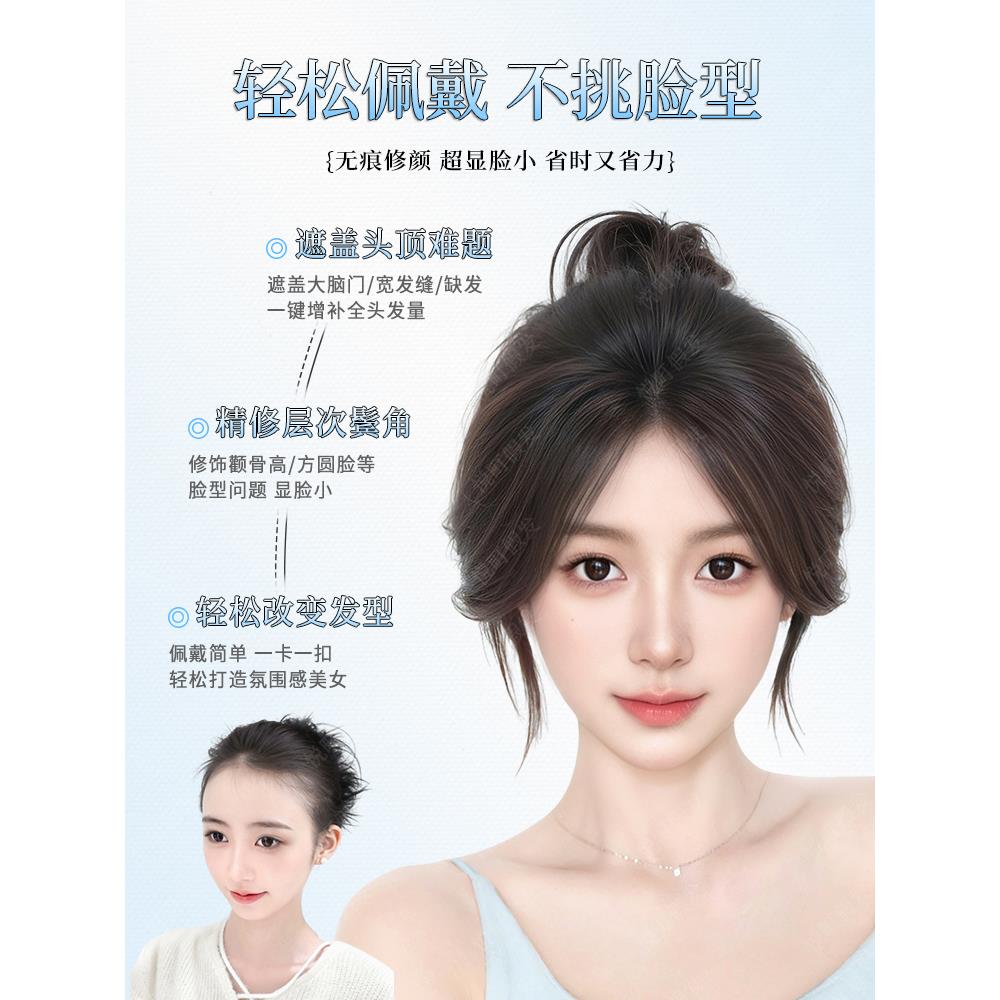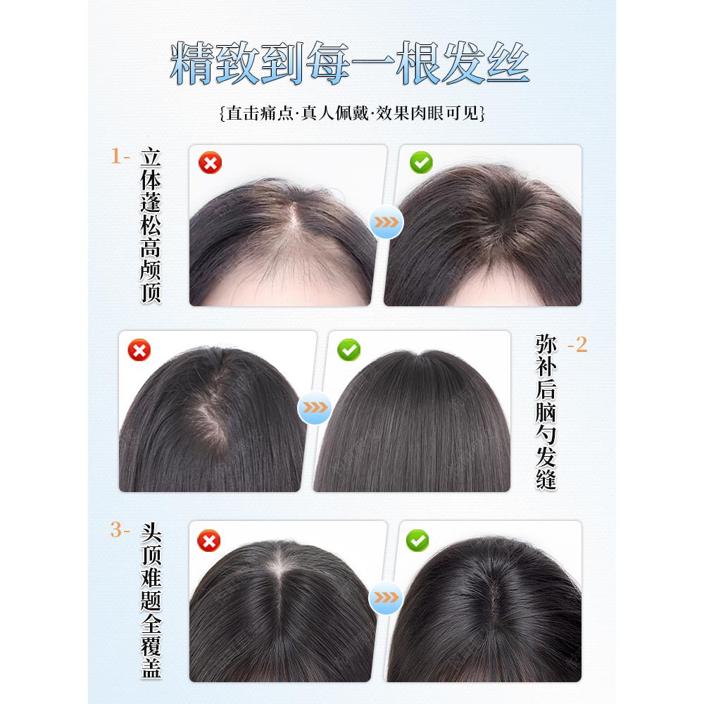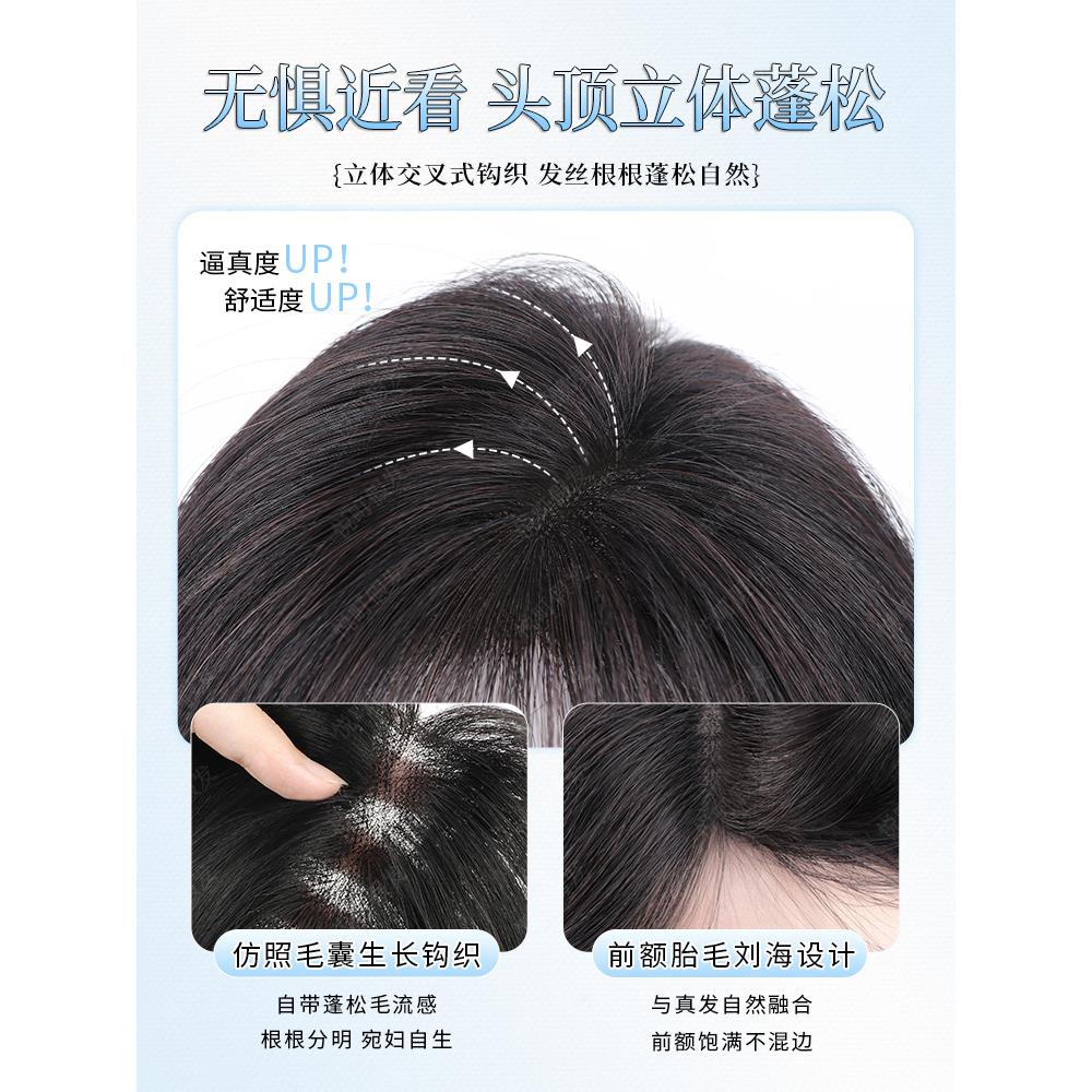 八字刘海假发女片头顶增发量真发遮白发高颅顶蓬松自然前额补发片