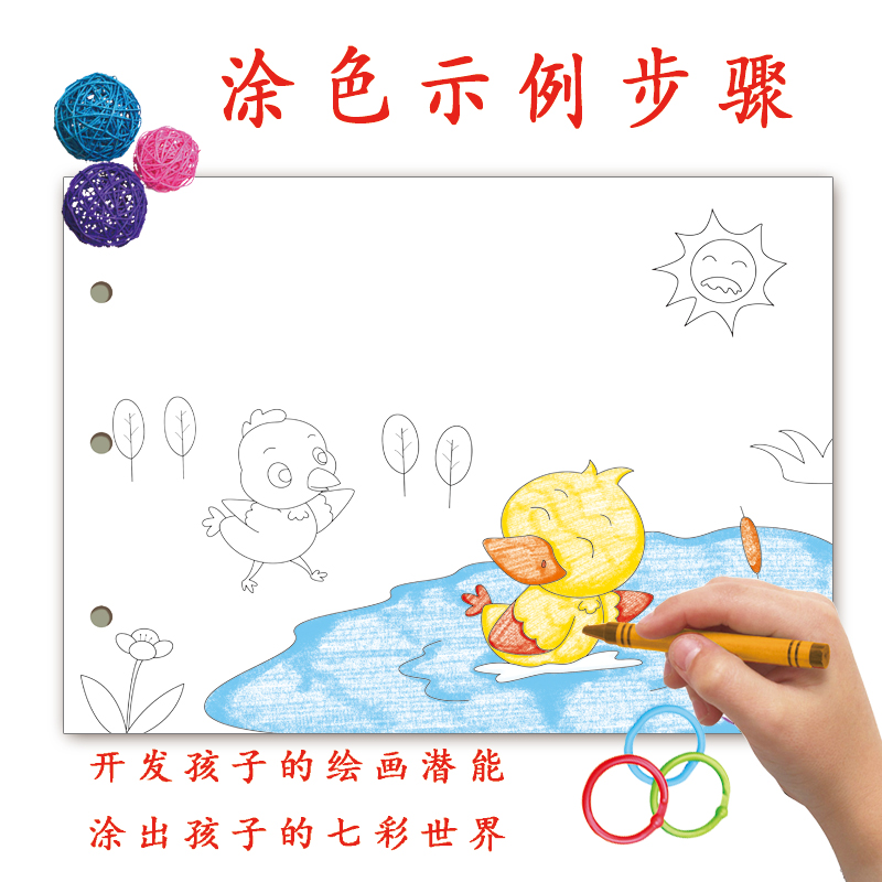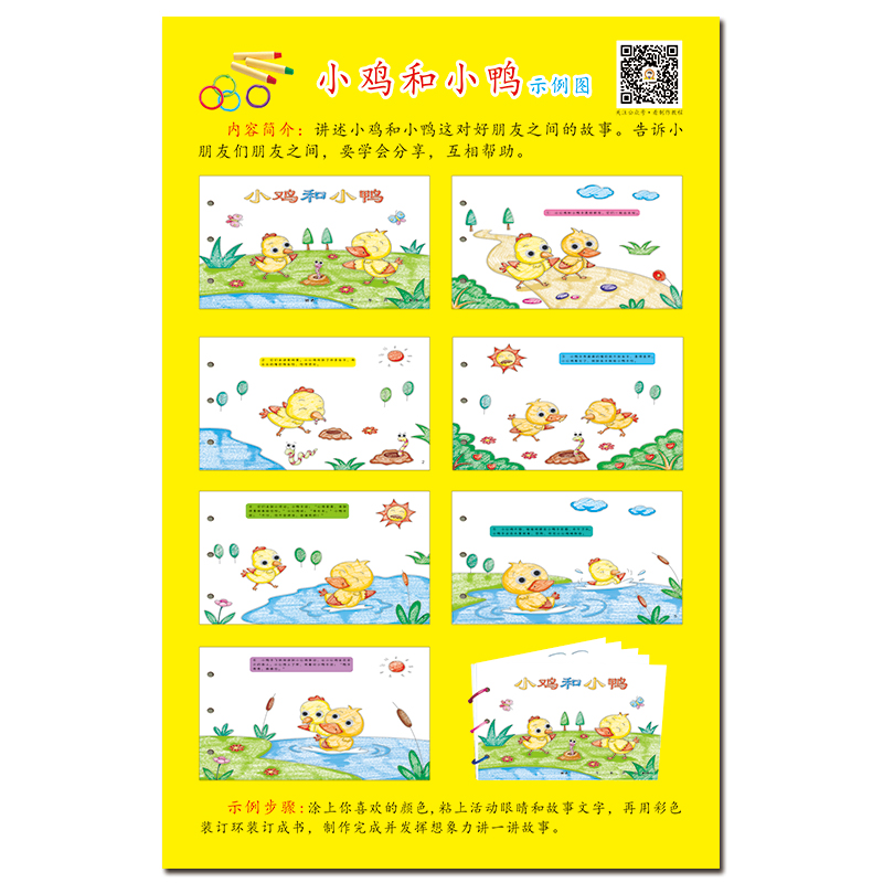 小鸡和小鸭自制绘本DIY涂色卡纸本儿童幼儿园学前班涂鸦故事空白有线条填色A4课堂家庭作业材料绘画套装