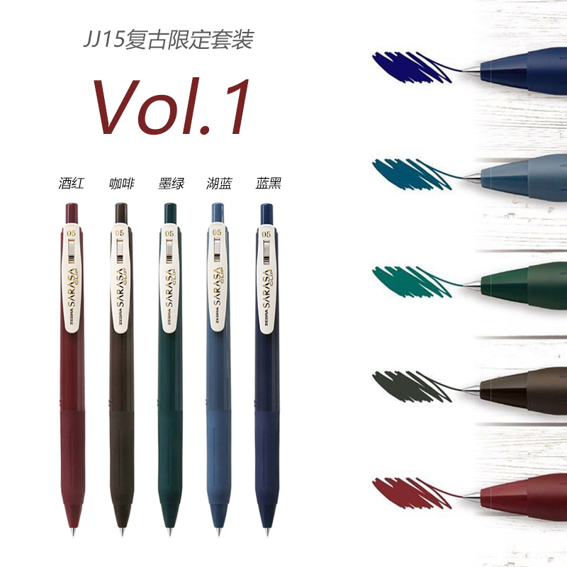 Zebra日本斑马JJ15复古色限定按动中性笔0.5酒红墨绿湖蓝学生手账