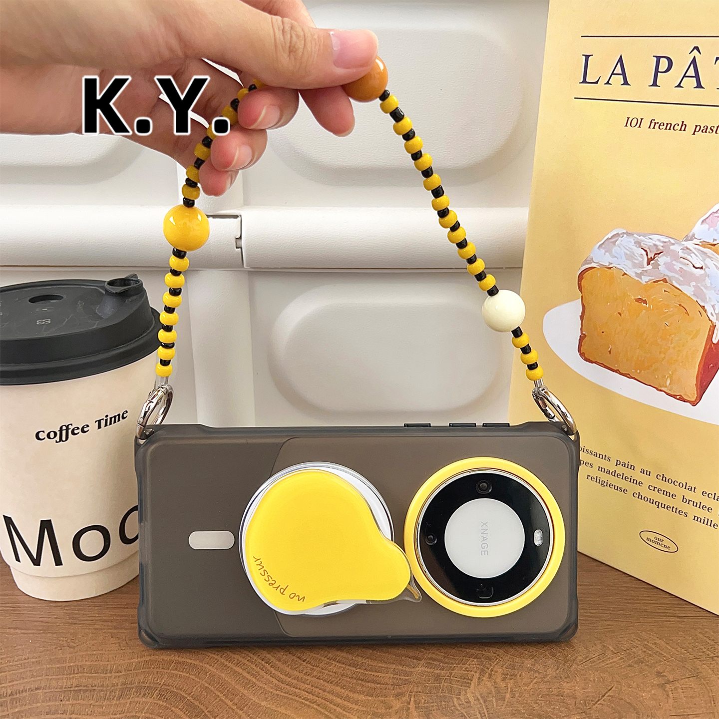 黄梨磁吸支架手机壳带挂绳适用于苹果17PROMAX华为mate60PRO手提手腕带15ULTRA单肩斜挎16/15PM四角开孔硬壳